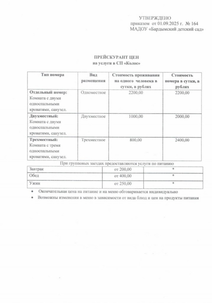 Услуги проживания в СП Колос |